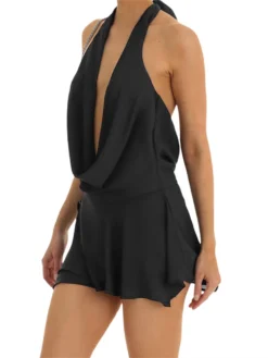 Women´s Summer Short Sling Dress Solid Color Sleeveless Halter Low Cut Backless Chiffon Dress Sexy Elegant Dresses