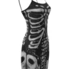 Women’s Bodycon Dress, Spaghetti Strap Sleeveless Human Bone Printed Mini Sling Dresses
